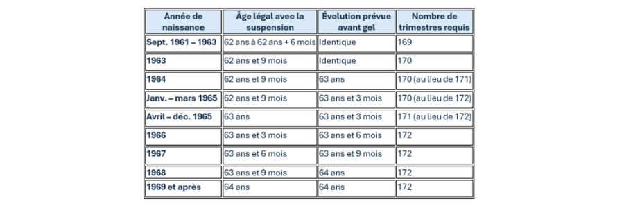 La suspension apporte un gain d’un trimestre pour les générations 1964 et 1965, et de deux trimestres pour les personnes nées entre janvier et mars 1965.